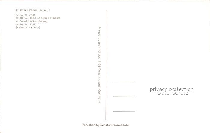 Flugzeuge Zivil Somali Airlines Boeing 707-330B 60-SBS c/n 19315 postalisch nicht gelaufen Erhaltung siehe scans