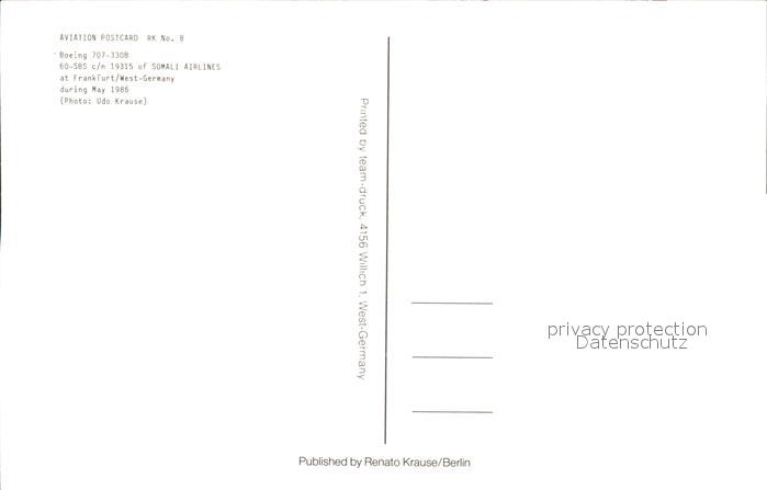 Flugzeuge Zivil Somali Airlines Boeing 707-330B 60-SBS c/n 19315 postalisch nicht gelaufen Erhaltung siehe scans