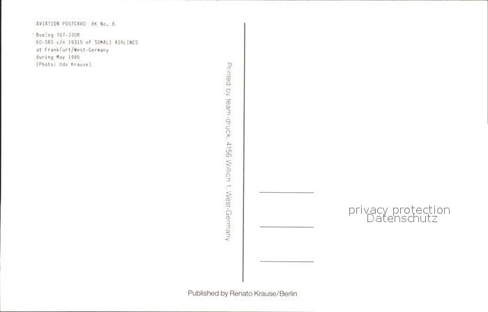 Flugzeuge Zivil Somali Airlines Boeing 707-330B 60-SBS c/n 19315 postalisch nicht gelaufen Erhaltung siehe scans