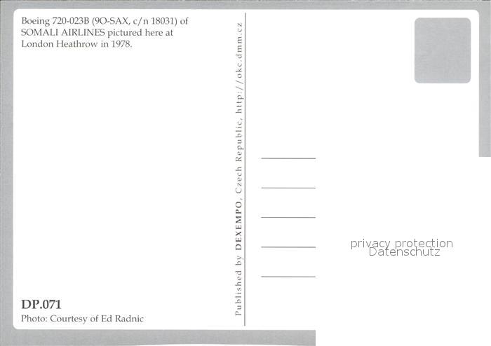 Flugzeuge Zivil Somali Airlines Boeing 720-023B 9O-SAX c/n 1803 postalisch nicht gelaufen Erhaltung siehe scans