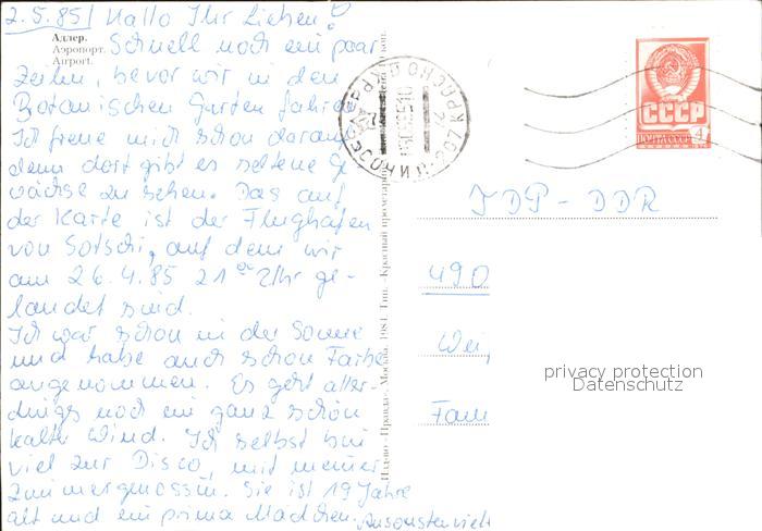 alte Postkarte Flugzeuge Zivil Sotschi Flughafen Aeroflot postalisch gelaufen Erhaltung siehe scans