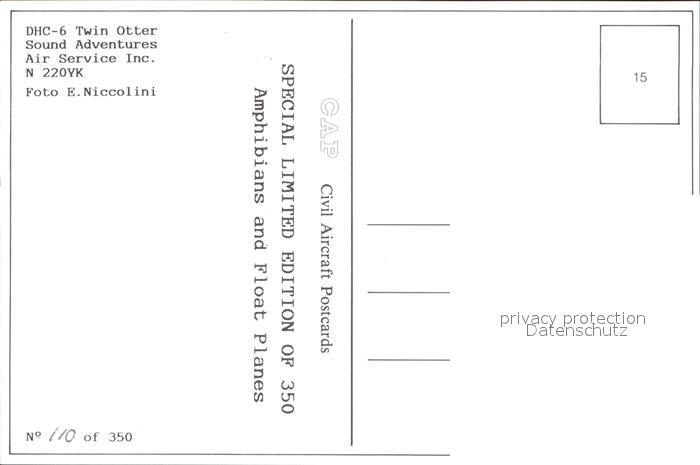 Flugzeuge Zivil Sound Adventures Air Service Inc. DHC-6 Twin Otter N220YK postalisch nicht gelaufen Erhaltung siehe scans
