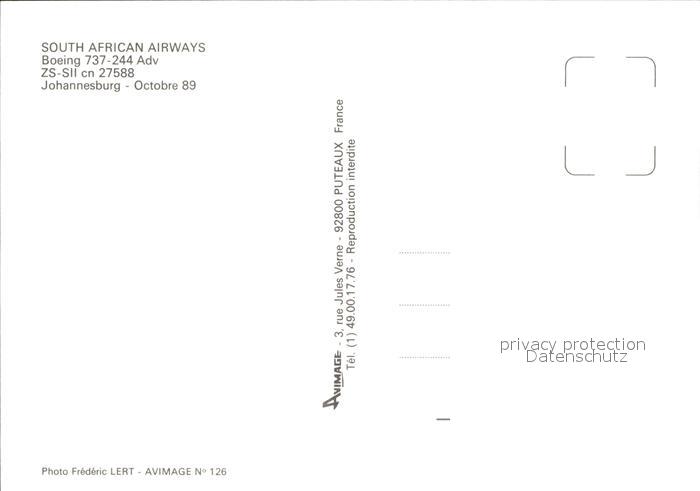 Flugzeuge Zivil South African Airways Boeing 737-244 Adv. ZS-SII cn 27588 postalisch nicht gelaufen Erhaltung siehe scans