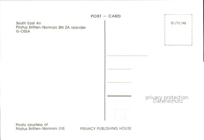 Flugzeuge Zivil South East Air Pilatus Britten-Norman BN 2A Islander G-OSEA postalisch nicht gelaufen Erhaltung siehe scans