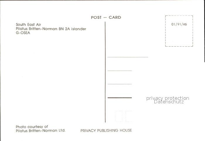 Flugzeuge Zivil South East Air Pilatus Britten-Norman BN 2A Islander G-OSEA postalisch nicht gelaufen Erhaltung siehe scans