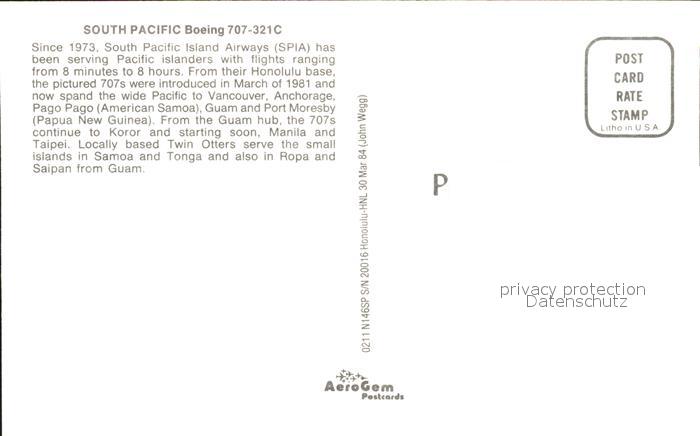 Flugzeuge Zivil South Pacific Boeing 707-321C N146SP postalisch nicht gelaufen Erhaltung siehe scans