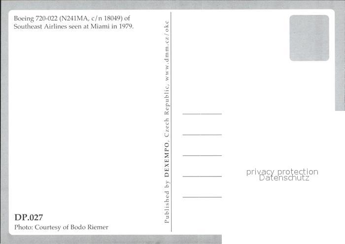 Flugzeuge Zivil Southeast Boeing 720-022 N241MA c/n 18049 postalisch nicht gelaufen Erhaltung siehe scans
