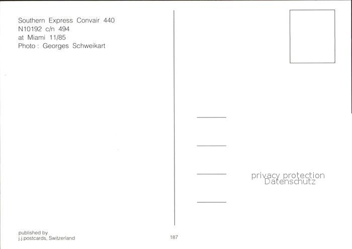 Flugzeuge Zivil Southern Express Convair 440 N10192 c/n 494 postalisch nicht gelaufen Erhaltung siehe scans