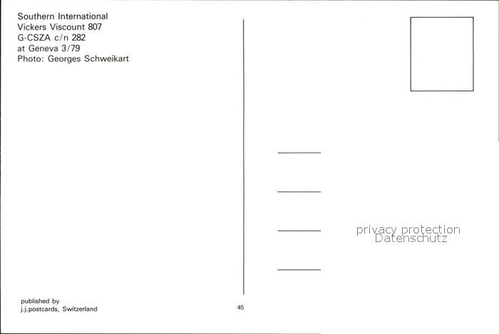 Flugzeuge Zivil Southern International Vickers Viscount 807 G-CSZA c/n 282 postalisch nicht gelaufen Erhaltung siehe scans