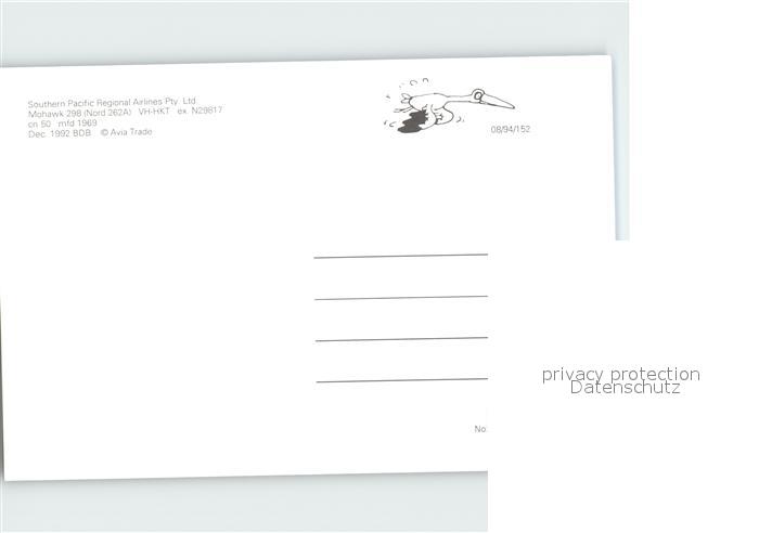 Flugzeuge Zivil Southern Pacific Regional Airlines Mohawk 298 VH-HKT cn 50 postalisch nicht gelaufen Erhaltung siehe scans