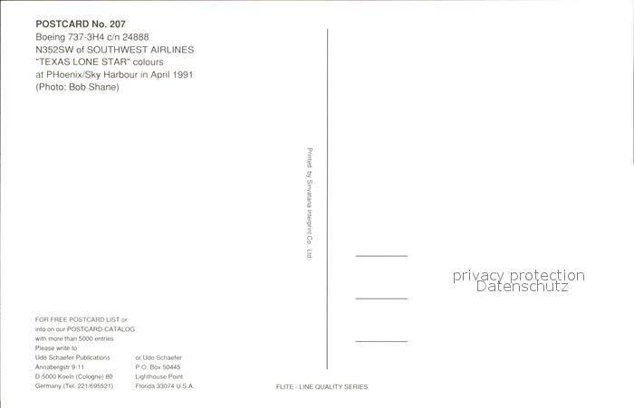 Flugzeuge Zivil Southwest Airlines Boeing 737-3H4 c/n 24888 N352SW postalisch nicht gelaufen Erhaltung siehe scans
