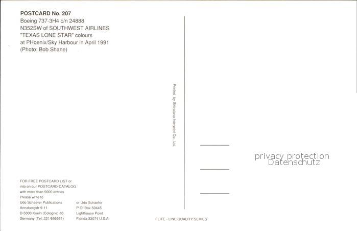 Flugzeuge Zivil Southwest Airlines Boeing 737-3H4 c/n24888 N352SW postalisch nicht gelaufen Erhaltung siehe scans