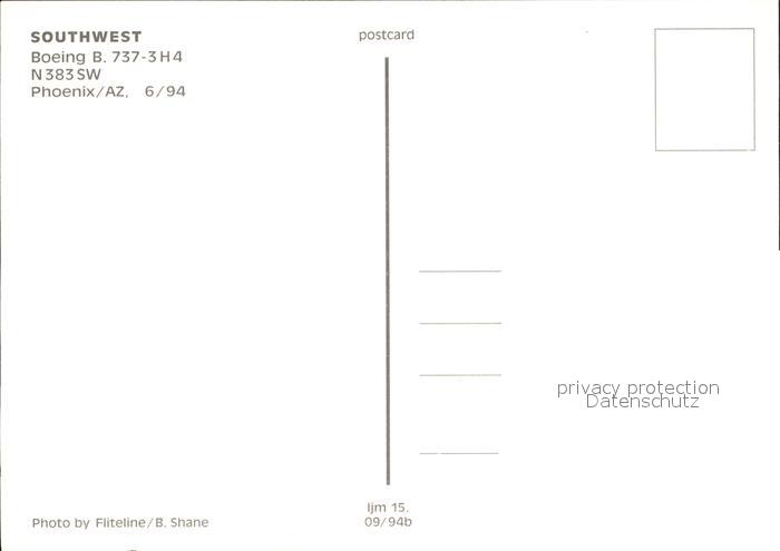 Flugzeuge Zivil Southwest Boeing B.737-3H4 N383 SW postalisch nicht gelaufen Erhaltung siehe scans