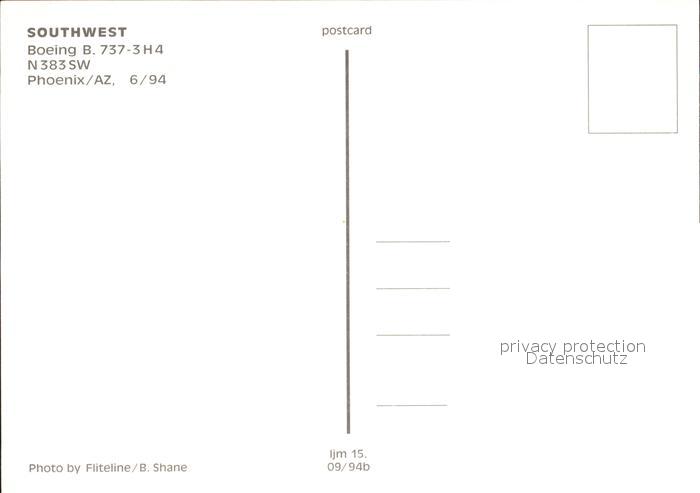 Flugzeuge Zivil Southwest Boeing B. 737-3H4 N383SW postalisch nicht gelaufen Erhaltung siehe scans