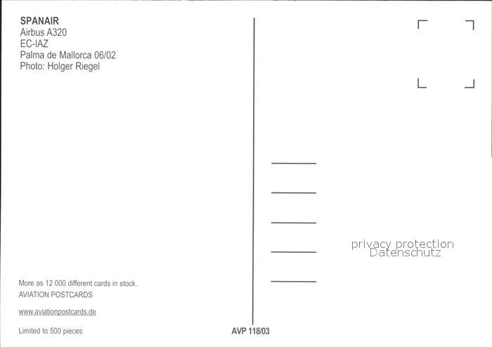 Flugzeuge Zivil Spanair Airbus A320 EC-IAZ postalisch nicht gelaufen Erhaltung siehe scans