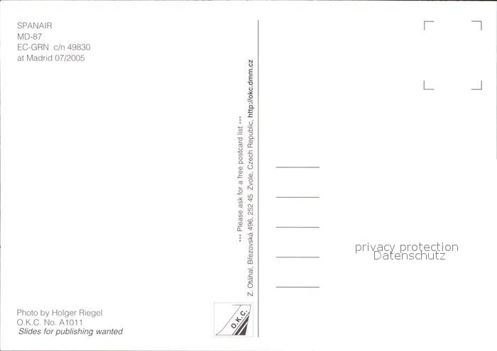 Flugzeuge Zivil Spanair MD-87 EC-GRN c/n 49830 postalisch nicht gelaufen Erhaltung siehe scans