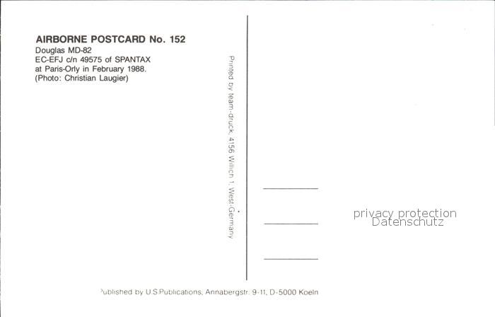Flugzeuge Zivil SPANTAX Douglas MD-82 EC-EFJ c/n 49575 postalisch nicht gelaufen Erhaltung siehe scans