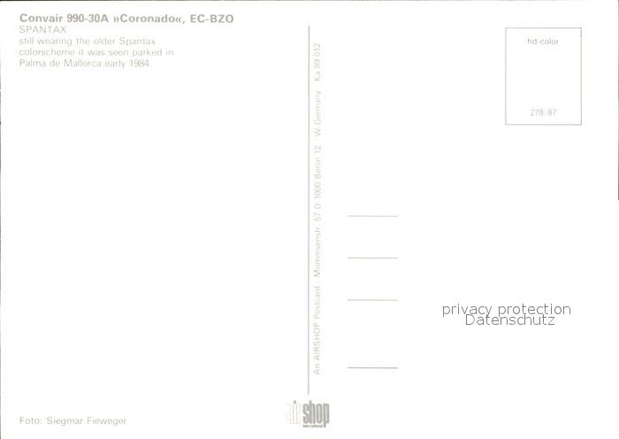 Flugzeuge zivil Spantay Convair 990-30A Coronado WC 820 Palma de Mallorca postalisch nicht gelaufen Erhaltung siehe scans