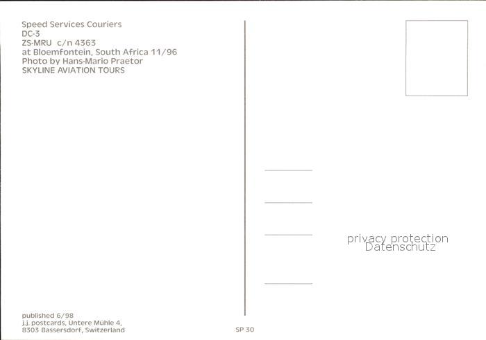 Flugzeuge Zivil Speed Services Couriers DC-3 ZS-MRU c/n 4363 postalisch nicht gelaufen Erhaltung siehe scans