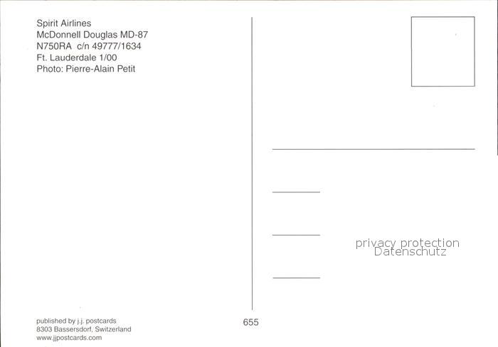 Flugzeuge Zivil Spirit Airlines McDonnell Douglas MD-87 N750RA c/n 49777/1634 postalisch nicht gelaufen Erhaltung siehe scans