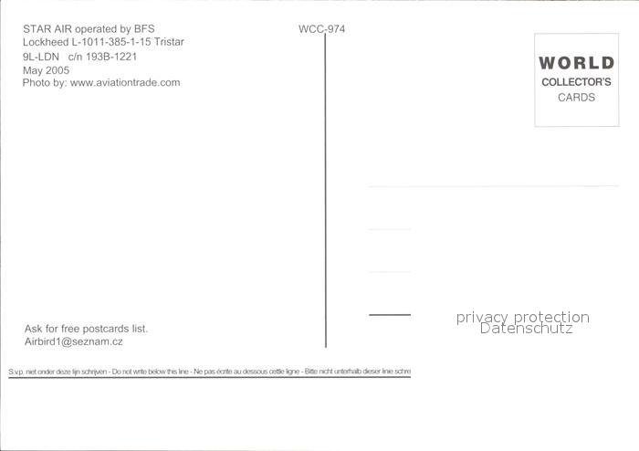 Flugzeuge Zivil Star Air BFS Lockheed L-1011-385-1-15 Tristar 9L-LDN postalisch nicht gelaufen Erhaltung siehe scans
