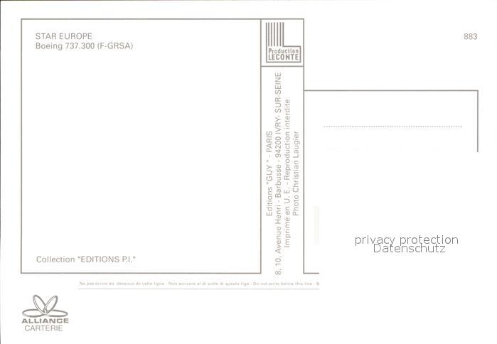 Flugzeuge Zivil Star Europe Boeing 737.300 F-GRSA postalisch nicht gelaufen Erhaltung siehe scans