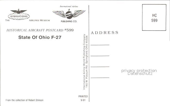 Flugzeuge Zivil State of Ohio F-27 postalisch nicht gelaufen Erhaltung siehe scans