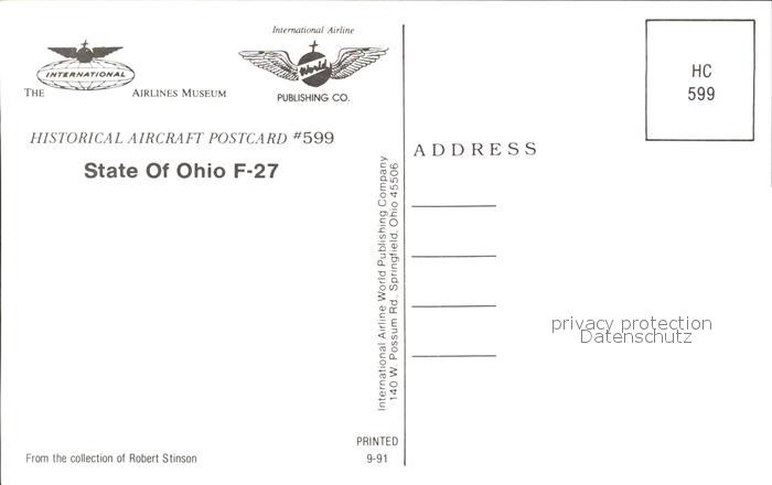 Flugzeuge Zivil State of Ohio F-27 postalisch nicht gelaufen Erhaltung siehe scans