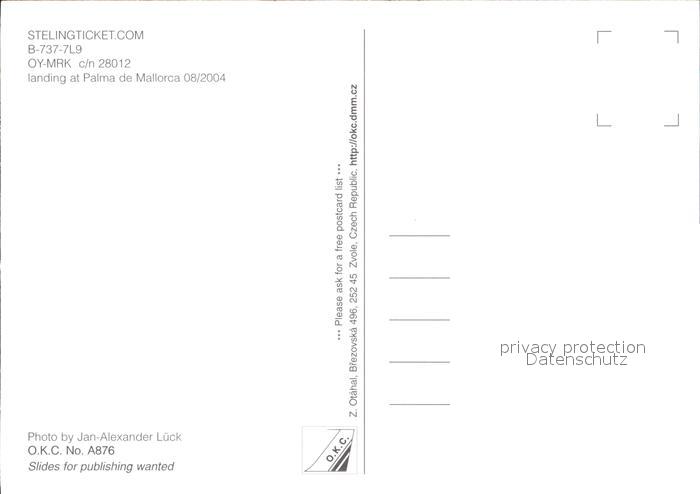 Flugzeuge Zivil Stelingticket.com B-737-7L9 OY-MRK c/n 28012 postalisch nicht gelaufen Erhaltung siehe scans