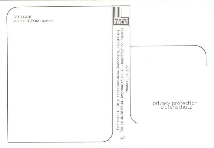 Flugzeuge Zivil Stellair DC-3 F-GEOM Nantes postalisch nicht gelaufen Erhaltung siehe scans