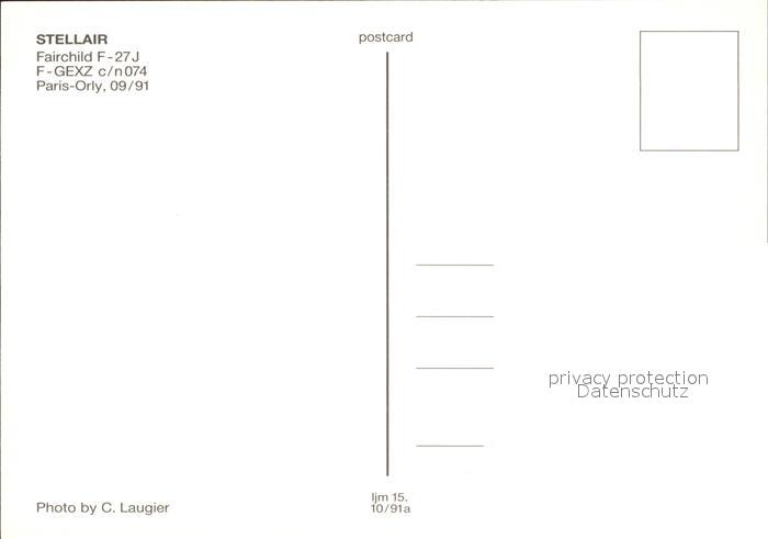 Flugzeuge Zivil Stellair Fairchild F-27 J F-GEXZ c/n 074 postalisch nicht gelaufen Erhaltung siehe scans
