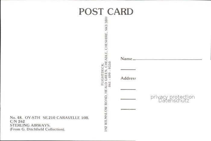Flugzeuge Zivil Sterling Airways Caravelle 10B OY-STH SE210 C/N 262 postalisch nicht gelaufen Erhaltung siehe scans