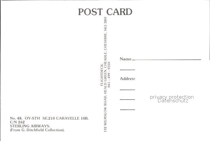 Flugzeuge Zivil Sterling Airways OY-STH SE.210 Caravelle 10B C/N 262 postalisch nicht gelaufen Erhaltung siehe scans