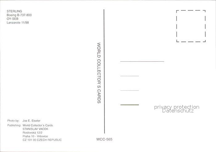 Flugzeuge Zivil Sterling Boeing B-737-800 OY-SEB postalisch nicht gelaufen Erhaltung siehe scans