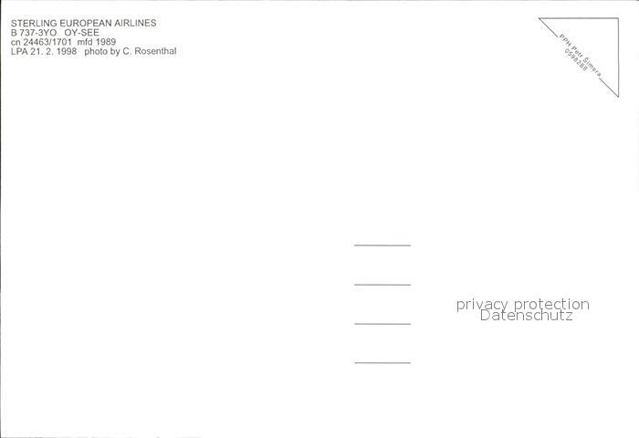 Flugzeuge Zivil Sterling European Airlines B-737-3YO OY-SEE cn 24463/1701 postalisch nicht gelaufen Erhaltung siehe scans