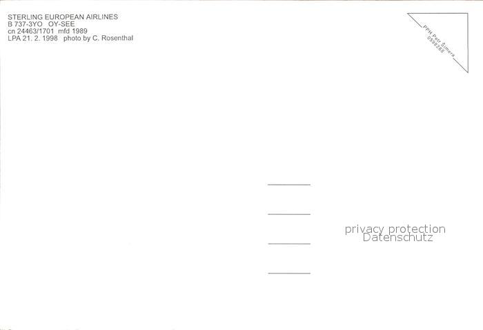 Flugzeuge Zivil Sterling European Airlines B-737-3YO OY-SEE cn 24463/1701 postalisch nicht gelaufen Erhaltung siehe scans