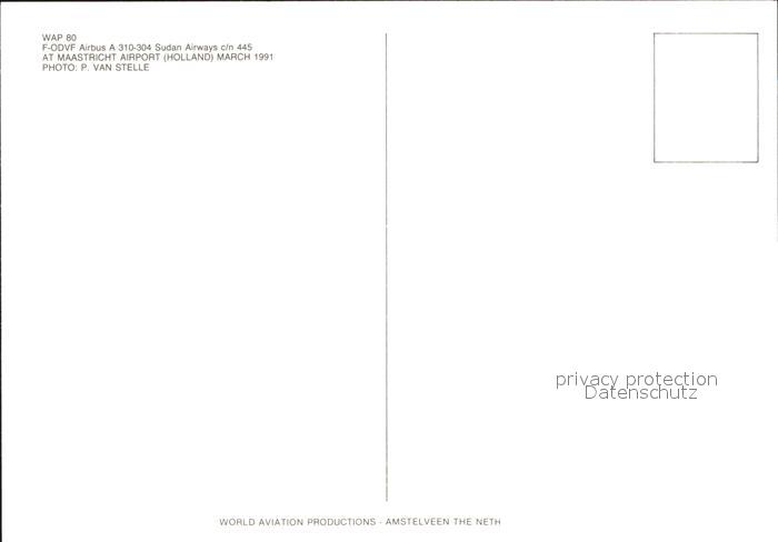 Flugzeuge Zivil Sudan Airways A310-304 F-ODVF c/n 445 postalisch nicht gelaufen Erhaltung siehe scans