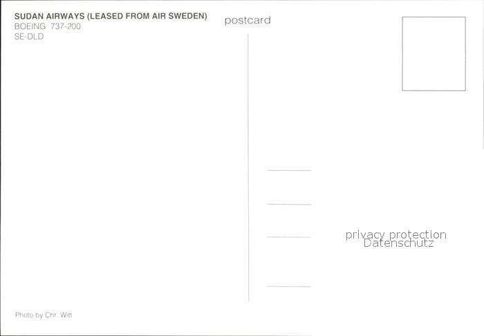 Flugzeuge Zivil Sudan Airways Boeing 737-200 SE-DLD postalisch nicht gelaufen Erhaltung siehe scans