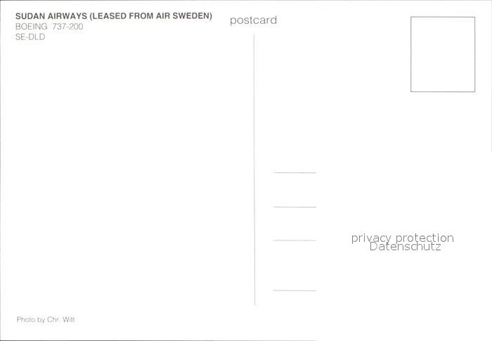 Flugzeuge Zivil Sudan Airways Boeing 737-200 SE-DLD postalisch nicht gelaufen Erhaltung siehe scans
