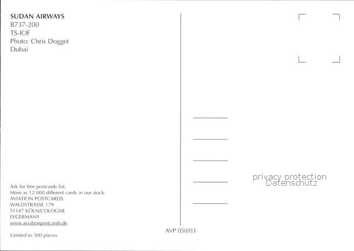 Flugzeuge Zivil Sudan Airways Boeing B737-200 TS-IOF postalisch nicht gelaufen Erhaltung siehe scans