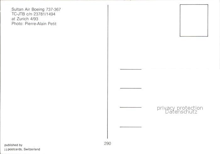 Flugzeuge Zivil Sultan Air Boeing 737-367 TC-JTB c/n 23781/1494 postalisch nicht gelaufen Erhaltung siehe scans