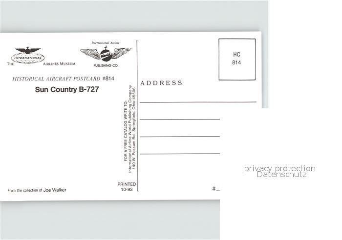 Flugzeuge Zivil Sun Country B-727 postalisch nicht gelaufen Erhaltung siehe scans