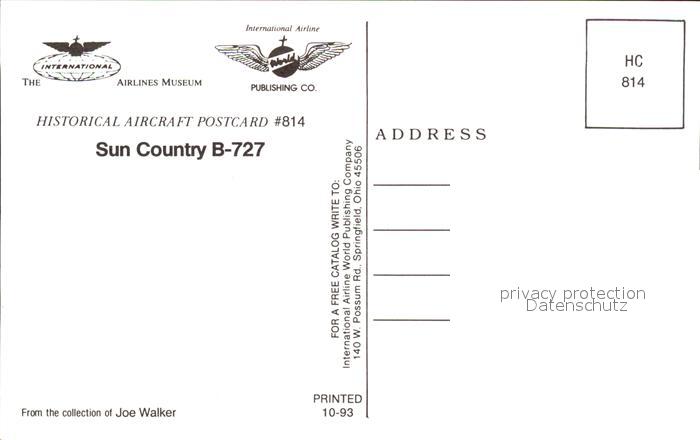 Flugzeuge Zivil Sun Country B-727 postalisch nicht gelaufen