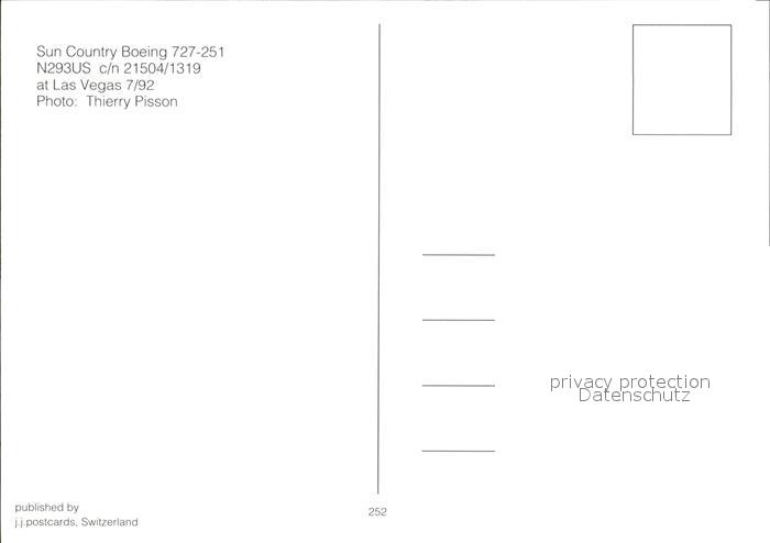 Flugzeuge Zivil Sun Country Boeing 727-251 N293US c/n 21504/1319 postalisch nicht gelaufen Erhaltung siehe scans