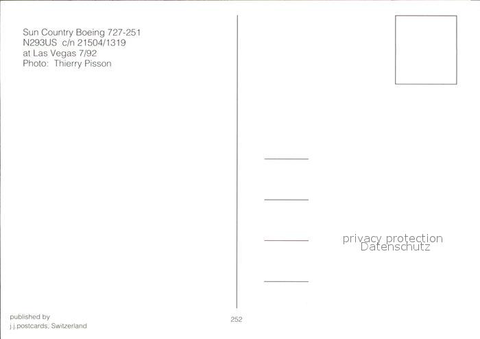 Flugzeuge Zivil Sun Country Boeing 727-251 N293US c/n 21504/1319 postalisch nicht gelaufen Erhaltung siehe scans