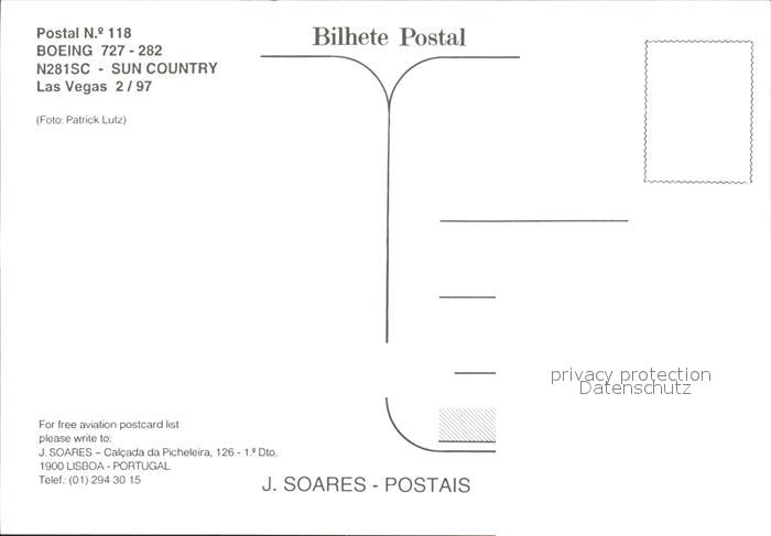 Flugzeuge Zivil Sun Country Boeing 727-282 N281SC postalisch nicht gelaufen Erhaltung siehe scans