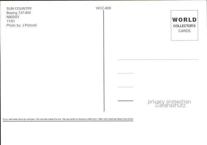 Flugzeuge Zivil Sun Country Boeing 737-800 N800SY postalisch nicht gelaufen Erhaltung siehe scans