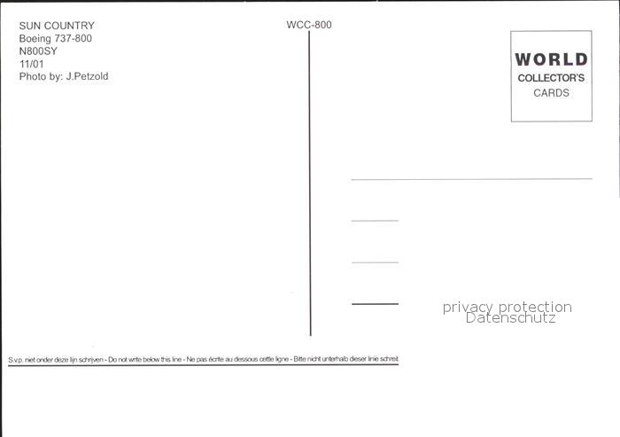 Flugzeuge Zivil Sun Country Boeing 737-800 N800SY postalisch nicht gelaufen Erhaltung siehe scans
