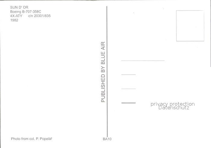 Flugzeuge Zivil Sun d Or Boeing 707-358C 4X-ATY c/n 20301/835 postalisch nicht gelaufen Erhaltung siehe scans