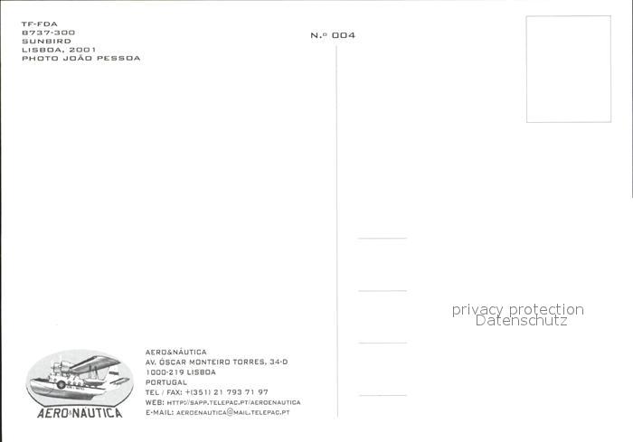 Flugzeuge Zivil Sunbird B737-300 TF-FDA postalisch nicht gelaufen Erhaltung siehe scans